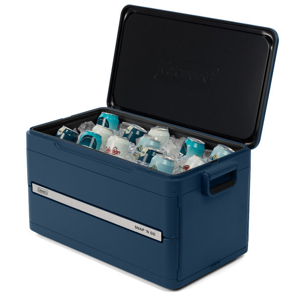 Lada frigorifica pasiva de la Coleman, Snap ’N Go™ este primul cooler rigid pliabil din lume*, conceput pentru a mentine bauturile si alimentele reci pana la 64 de ore si pentru a se plia rapid pana la o treime din dimensiunea sa.